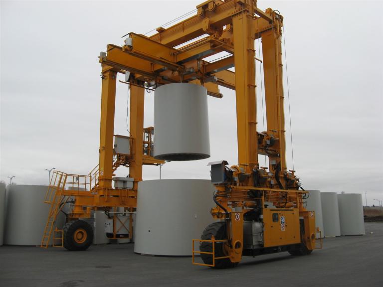 Straddle Carriers are especially suitable for the use on jobsites and storage areas where an installation of rails is not economically reasonable or practical.
